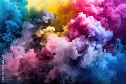 © Fotograf, Fototapeta premium A vibrant and colorful display of smoke set against a dark background