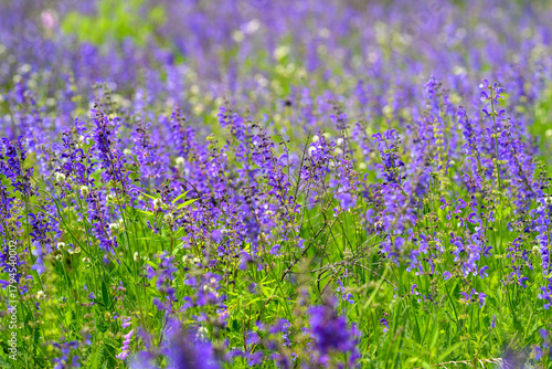 Naklejka premium A Vibrant and Colorful Field of Beautiful Purple Wildflowers Blooms...