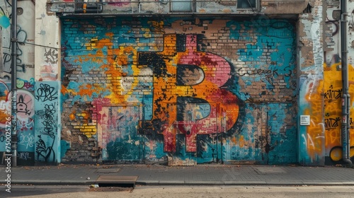 Fototapeta premium A vibrant and colorful graffiti of the Bitcoin symbol on a brick wall,...