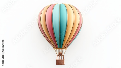 Naklejka premium A vibrant and colorful hot air balloon floats gracefully against a clear backdrop, symbolizing adventure, freedom, and the joy of exploration.