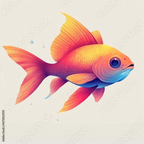 Fototapeta premium A vibrant and colorful illustration of a fish with gradient hues of reds,...
