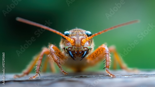 Fototapeta premium A vibrant and detailed macro shot of an insect showcasing its large mandibles...