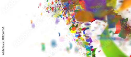 Fototapeta premium A vibrant and dynamic abstract background featuring a colorful confetti explosion against a white backdrop. Perfect for celebration, party, or festive designs.