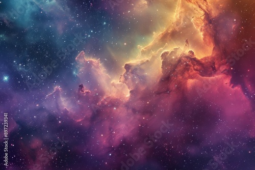 Fototapeta premium A vibrant and dynamic celestial space featuring an array of stars and clouds...
