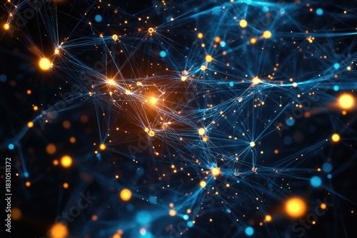 © Sean Hoong, Obraz premium A vibrant and dynamic digital network of interconnected nodes and lines, representing the intricate web of connections and relationships within a complex system.