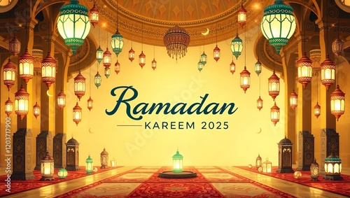 © Shahnaz, Obraz premium A vibrant and festive digital illustration of Ramadan celebration 2025