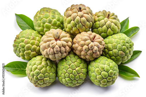 Fototapeta premium A vibrant and lush cluster of exotic custard apples with fresh leaves