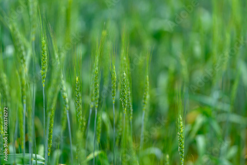 Fototapeta premium A Vibrant and Lush Green Wheat Field Extending Under the Bright Sunlight That...