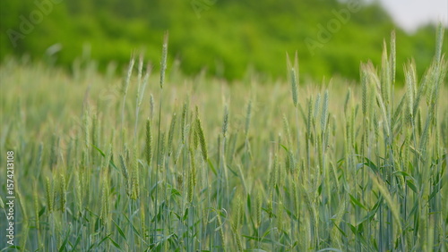 Obraz premium A Vibrant and Lush Green Wheat Field Extends Under a Clear and Expansive Sky...