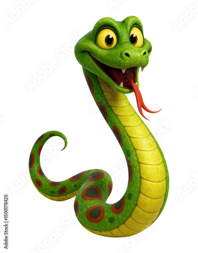 Fototapeta premium A Vibrant and Playful Cartoon Snake with Green and Yellow Scales, Large...