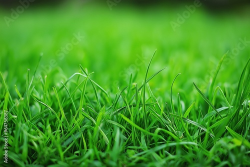 Fototapeta premium A vibrant and sharp close-up of lush green grass blades, capturing the...