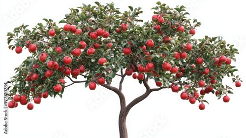 © Template_Design, Fototapeta premium A vibrant apple tree laden with ripe red apples, showcasing healthy foliage and a lush appearance in a bright environment.