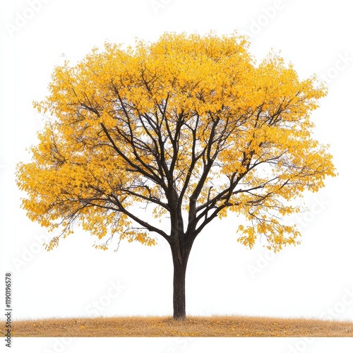 © Diffin, Fototapeta premium A vibrant arafed tree with striking yellow leaves stands out against a crisp white background, showcasing nature's beauty in a minimalist style.