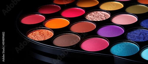 Naklejka premium A vibrant arrangement of colorful eyeshadow palettes on a black background...
