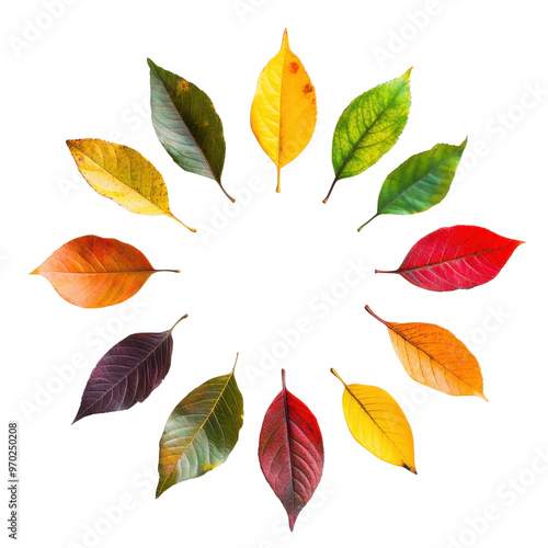 Obraz premium A vibrant arrangement of colorful leaves, showcasing the beauty of nature in...