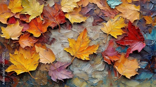 Obraz premium A vibrant array of autumn leaves in rich colors of orange, red, and yellow,...