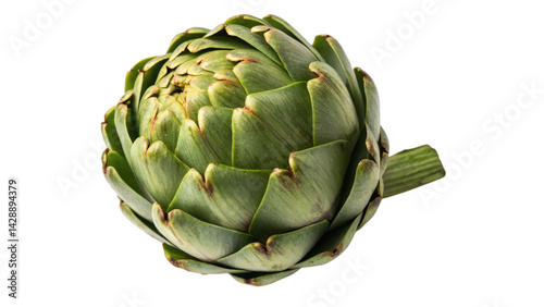 Obraz premium A vibrant artichoke with layered green leaves, showcasing its unique structure and texture, highlighting its botanical beauty.