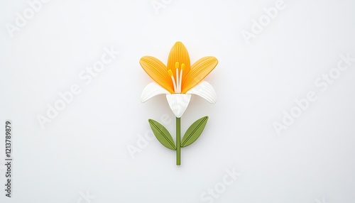 © benz, Naklejka premium A vibrant, artificial lily flower with orange and white petals against a clean, white background