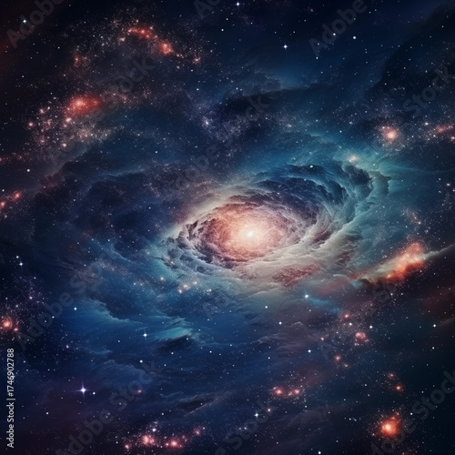 Obraz premium A vibrant blue and red nebula in outer space with numerous shining stars and...