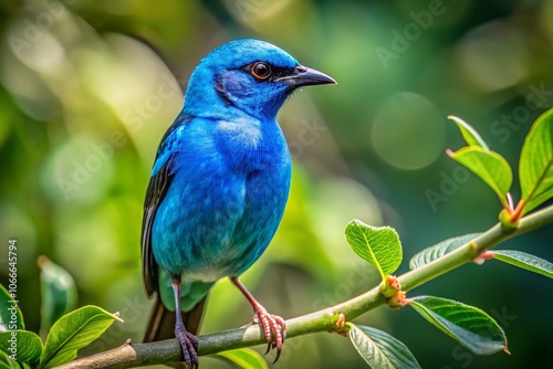 © chaowalit, Obraz premium A vibrant blue dacnis bird perches gracefully on a branch, leaving ample space for your words.