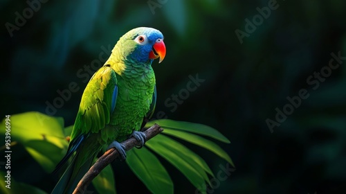 Fototapeta premium A vibrant Blue-naped Parrot Tanygnathus lucionensis with striking colorful...