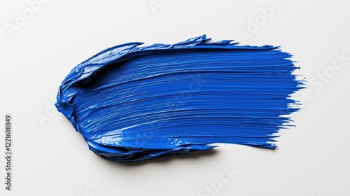 © ahmad, Fototapeta premium A vibrant blue paint smear on a white background, showcasing texture and color.