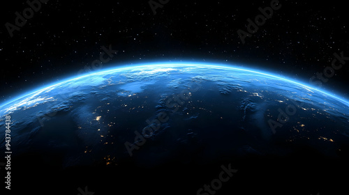 © Siasart Stock, Fototapeta premium A vibrant blue planet Earth with a starry background.