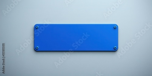 © sasiprapa, Fototapeta premium A Vibrant Blue Rectangular Sign Mounted on a Light Gray Wall with Four Visible Fasteners