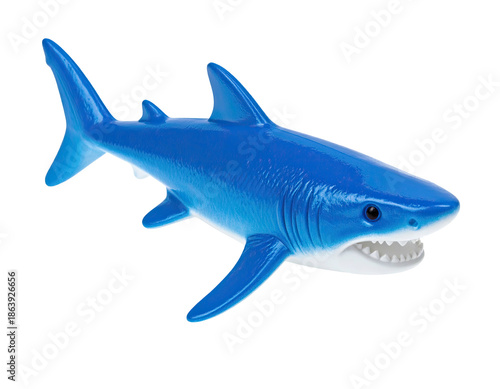 Obraz premium A vibrant, blue toy shark figurine against a stark black background