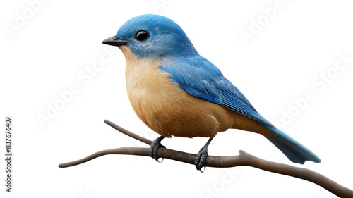 © Zain, Fototapeta premium A vibrant bluebird perched on a slender branch, showcasing its striking colors in a natural setting.