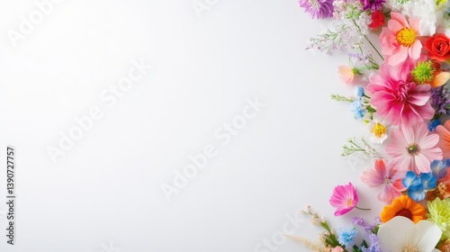 Naklejka premium A vibrant bouquet of colorful flowers arranged vertically on a pristine white...