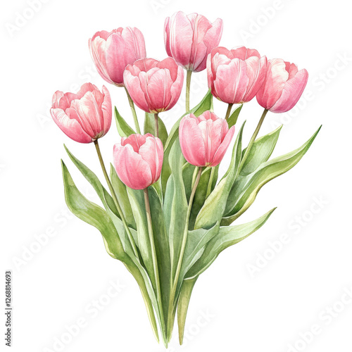 Fototapeta premium A vibrant bouquet of pink tulips elegantly arranged with lush green leaves.