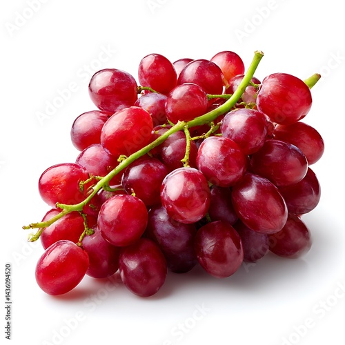 © MSTKolpana, Fototapeta premium A vibrant bunch of fresh red grapes isolated on a clean white background