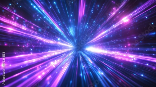 Naklejka premium A vibrant burst of colorful light streaks through a dark background, creating...