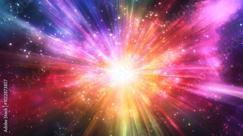 Naklejka premium A vibrant burst of rainbow colors, radiating outward from the center in an explosion effect