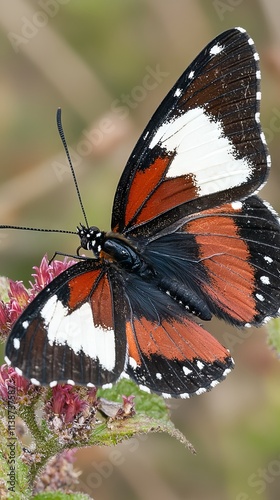 © MetaKibo, Obraz premium A vibrant butterfly perched on a flower, showcasing its colorful wings.