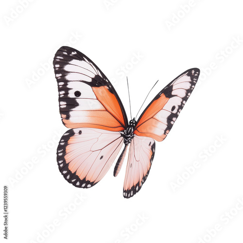 © Natnicha, Fototapeta premium A vibrant butterfly with orange and black wings, isolated on a white background.