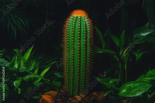 Naklejka premium A vibrant cactus stands tall amidst lush greenery