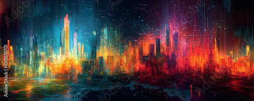 Fototapeta premium A vibrant city skyline illuminated with bright colors, reflecting a...