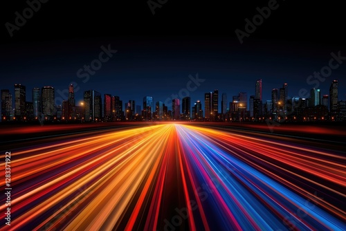 Fototapeta premium A vibrant cityscape at night with streaks of colorful light representing...