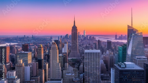 © Muhammad, Fototapeta premium A vibrant cityscape view of New York City skyline during sunset or sunrise