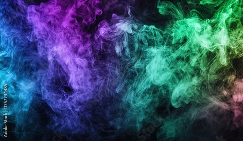 © DnQajik, Obraz premium A vibrant cloud of smoke transitions through a rainbow of colors against a black background, creating a dynamic visual