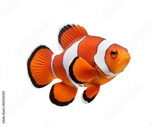 Fototapeta premium A vibrant clownfish with striking orange and white stripes, isolated on a...