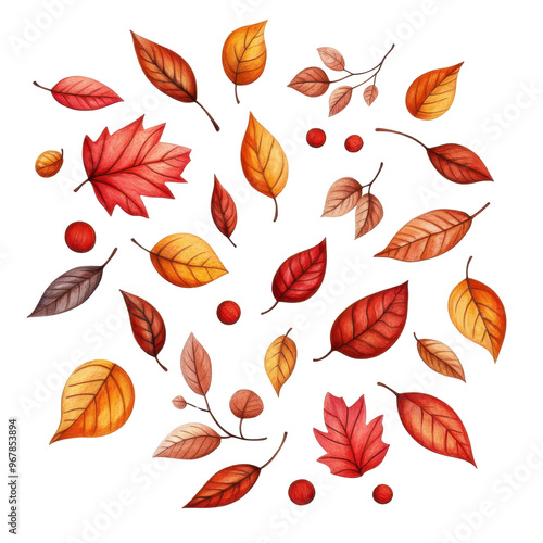 Fototapeta premium A vibrant collection of autumn leaves in varying shades of red, orange, and...