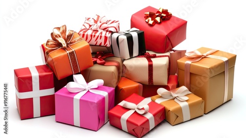 © Svitlana, Obraz premium A vibrant collection of colorful gift boxes creating a festive atmosphere