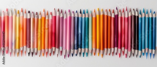 Obraz premium A vibrant collection of colorful pencils arranged in a neat row, perfect for...