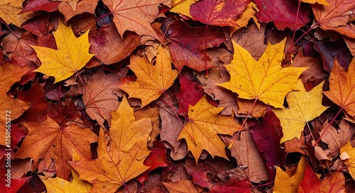 Obraz premium A vibrant collection of fallen autumn leaves creates a beautiful natural carpet, showcasing the rich colors of the season's transition ,fall ,natural ,texture