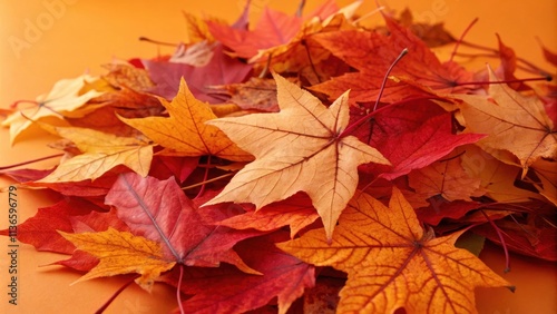 Fototapeta premium A vibrant collection of fallen autumn leaves, showcasing the changing colors...