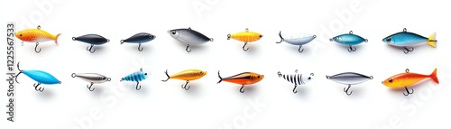 © Tondone, Fototapeta premium A vibrant collection of fishing lures displayed in various colors and designs