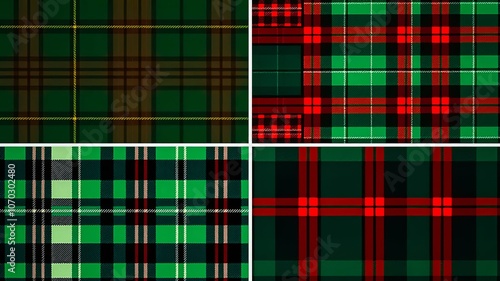 Obraz premium A vibrant collection of four unique plaid patterns featuring bold green, red,...